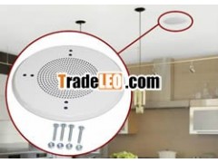 Ceiling speaker grille is white painted for blending into the surrounding ceiling.